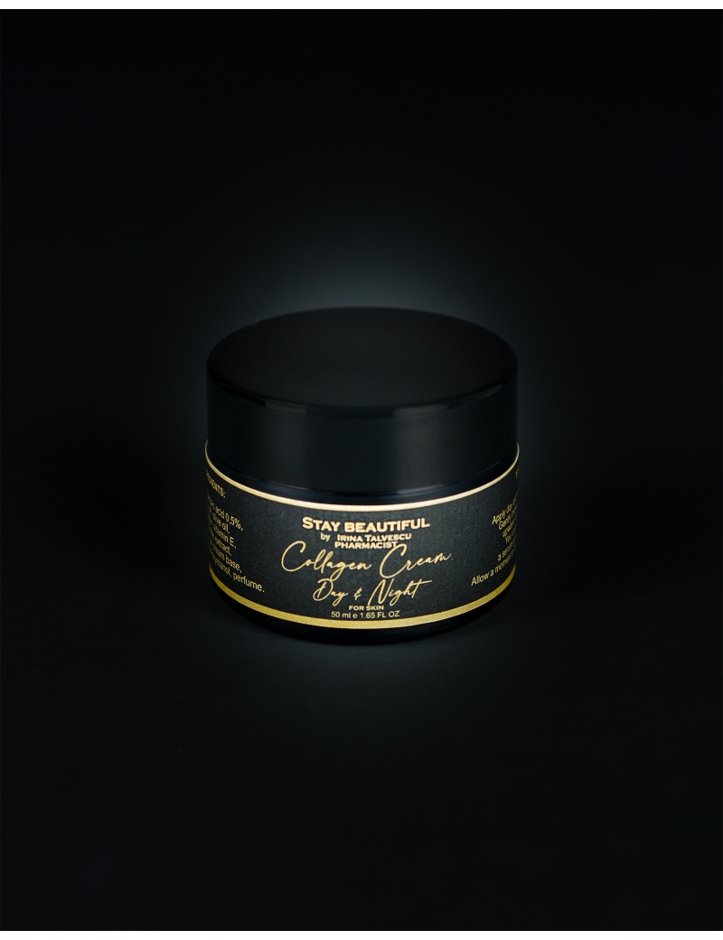Ingrediente: colagen, acid ferulic 0,5%, ulei de argan, ulei de măsline, unt de shea, vitaminaE, extract de mușețel, bază hidrofilă pentru cremă-gel, etoxidiglicol, phenoxyetanol, parfum.