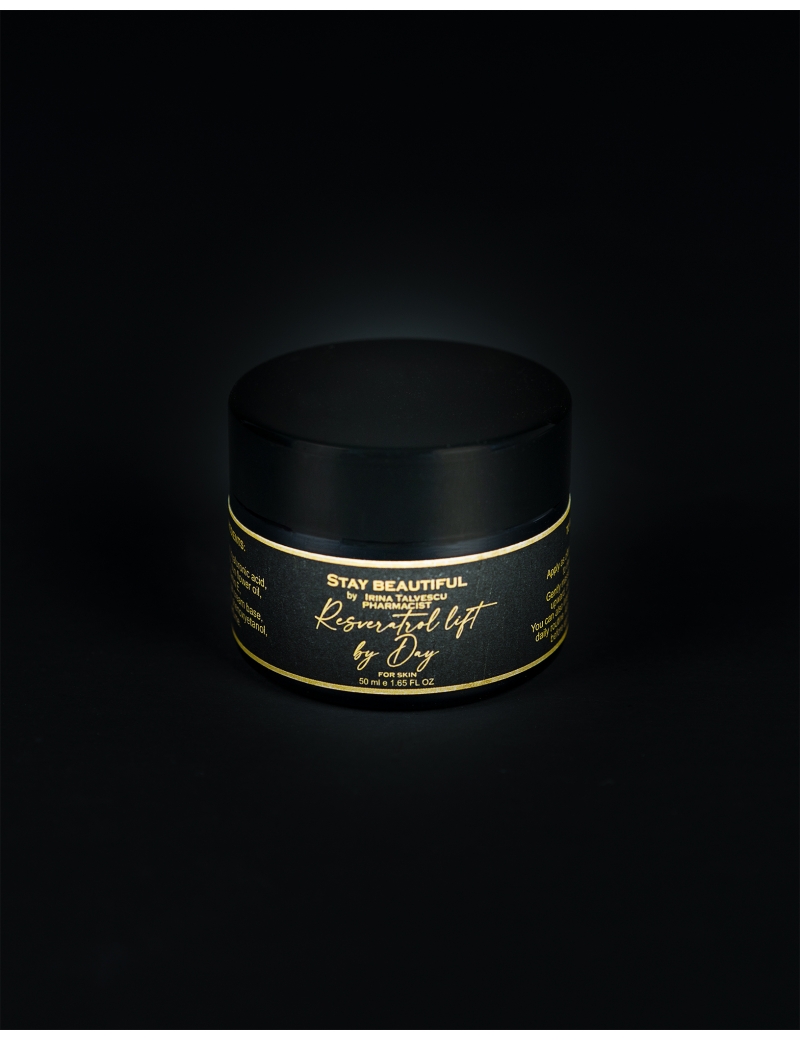 Ingrediente: Resveratrol, acid hialuronic, ulei de migdale, ulei de floarea soarelui, vitamina E, bază hidrofilă pentru cremă-gel, etoxidiglicol, phenoxyetanol, parfum.